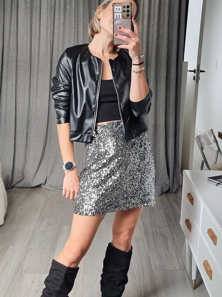 Ya era hora de tener un articulo full brillos y esta mini vino a resolverlo! Simple, esta hecha en paillet de punto, integramente forrada y con cintura elastica. Combinala de cien maneras, dale mil usos!