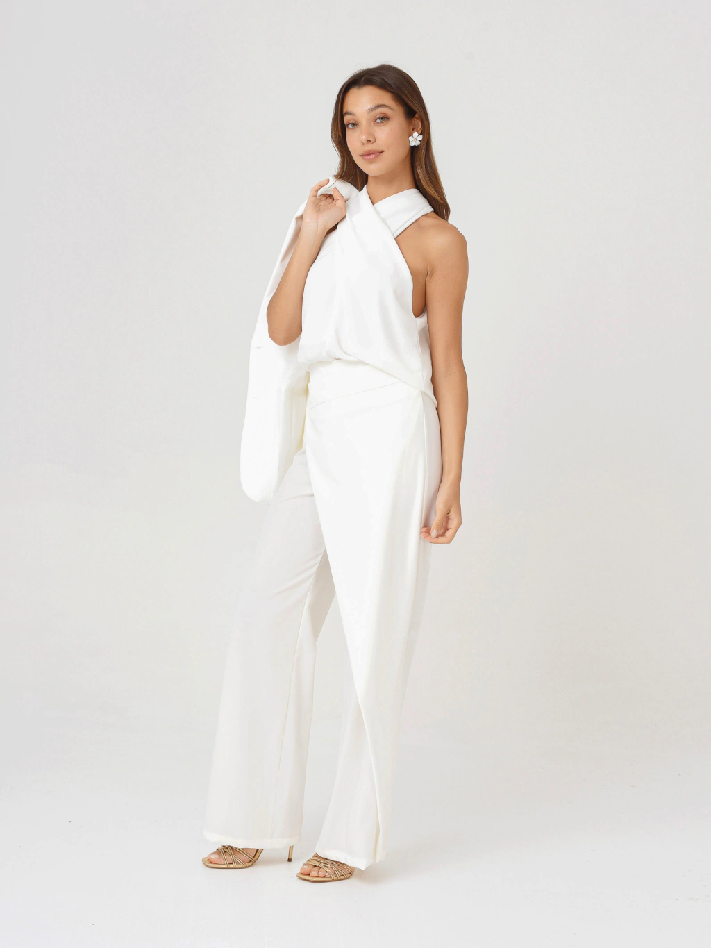 Back in Stock de un favorito clasico! El top Jade de escote halter cruzado esta hecho en seda arrugada. Ultra delicado, se regula y anuda en espalda. Esta parcialmente forrado por lo que no transparenta. Ultra versatil combinalo con todo y para todo!